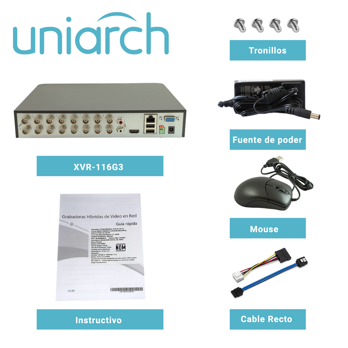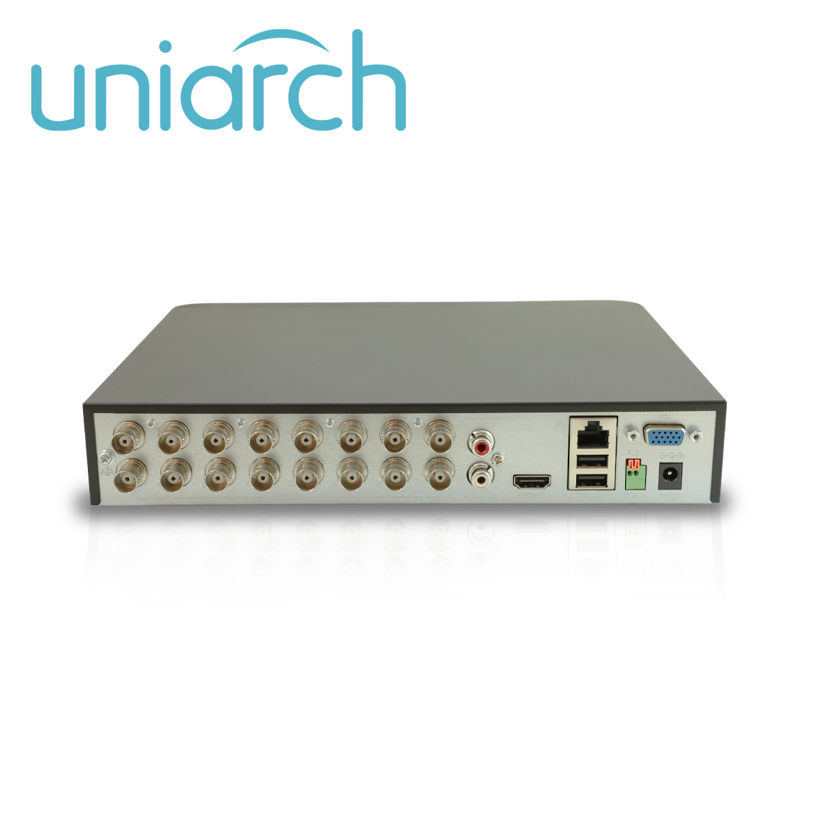DVR PENTAHIBRIDO UNIARCH XVR-116G3 El DVR pentahíbrido de Uniarch está diseñado para ser compatible con cámaras analógicas e IP. El codificador incorporado puede procesar las imágenes capturadas con una resolución de hasta 5MP. Los usuarios pueden elegir el número de canales analógicos y canales IP a su disposición. Con la ayuda de una tecnología de codificación única, tanto el ancho de banda de transmisión como el espacio de almacenamiento pueden reducirse significativamente,para una solución sumamente rentable. Caracteristicas: Admite formatos de vídeo H.265/H.264 Admite audio por cable coaxial (solo para cámaras TVI). Admite cámaras TVI, AHD, CVI, CVBS, IP con acceso adaptable. Entrada BNC de 16 canales. Admite salida HDMI de 1 canal, salida VGA de 1 canal hasta 1920*1080. Larga distancia de transmisión por cable coaxial. Admite cámaras convencionales de protocolos ONVIF y RTSP. Disco duro de hasta 8 TB.