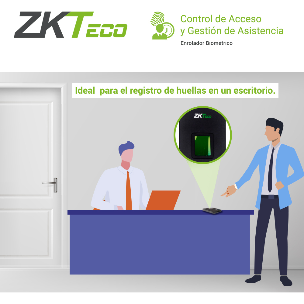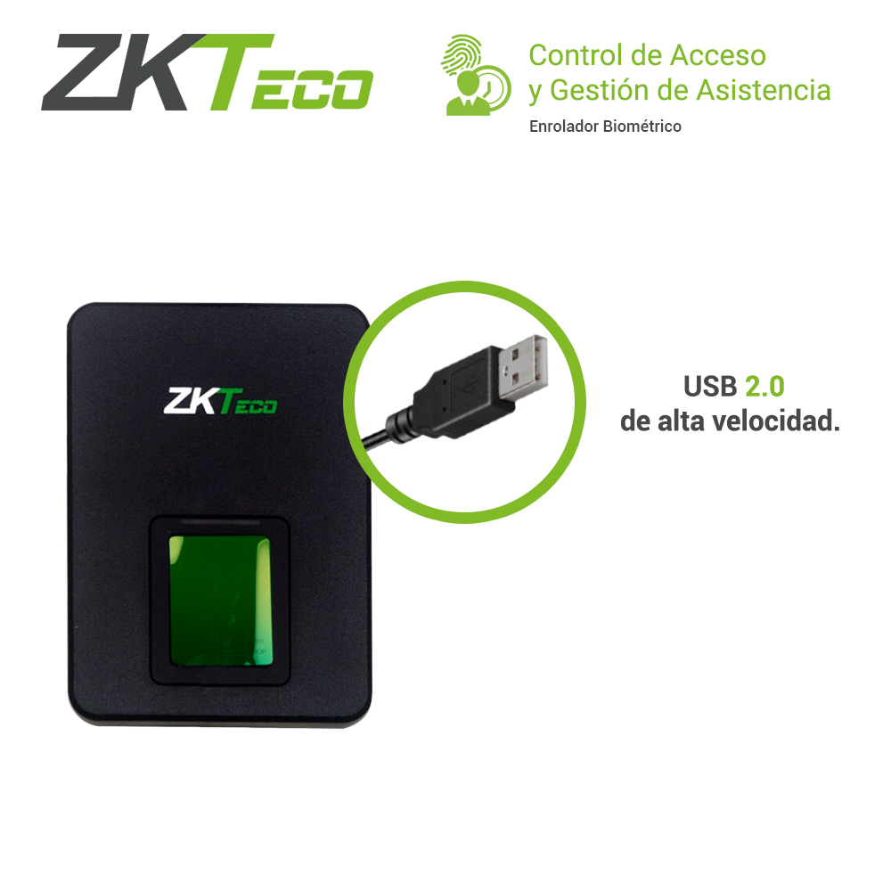Enrolador de huellas para software de acceso y asistencia ZK9500 Permite ahorrar tiempo y dinero especialmente cuando un elevado volumen de usuarios use los sistemas ZK del lugar. Características: Amplia zona de captura de huellas y alta calidad de imagen. Operación estable bajo luz intensa. Reconocimiento rápido de huellas secas, ásperas y húmedas. Modo de reposo. Consumo bajo de energía. Interfaz USB de alta velocidad. Material plástico industrial ABS de alta calidad. SDK disponible para desarrolladores. Compatible con sistema operativo Windows incluyendo Windows XP Vista Windows 7 y Windows 8/10 (32/64bit).
