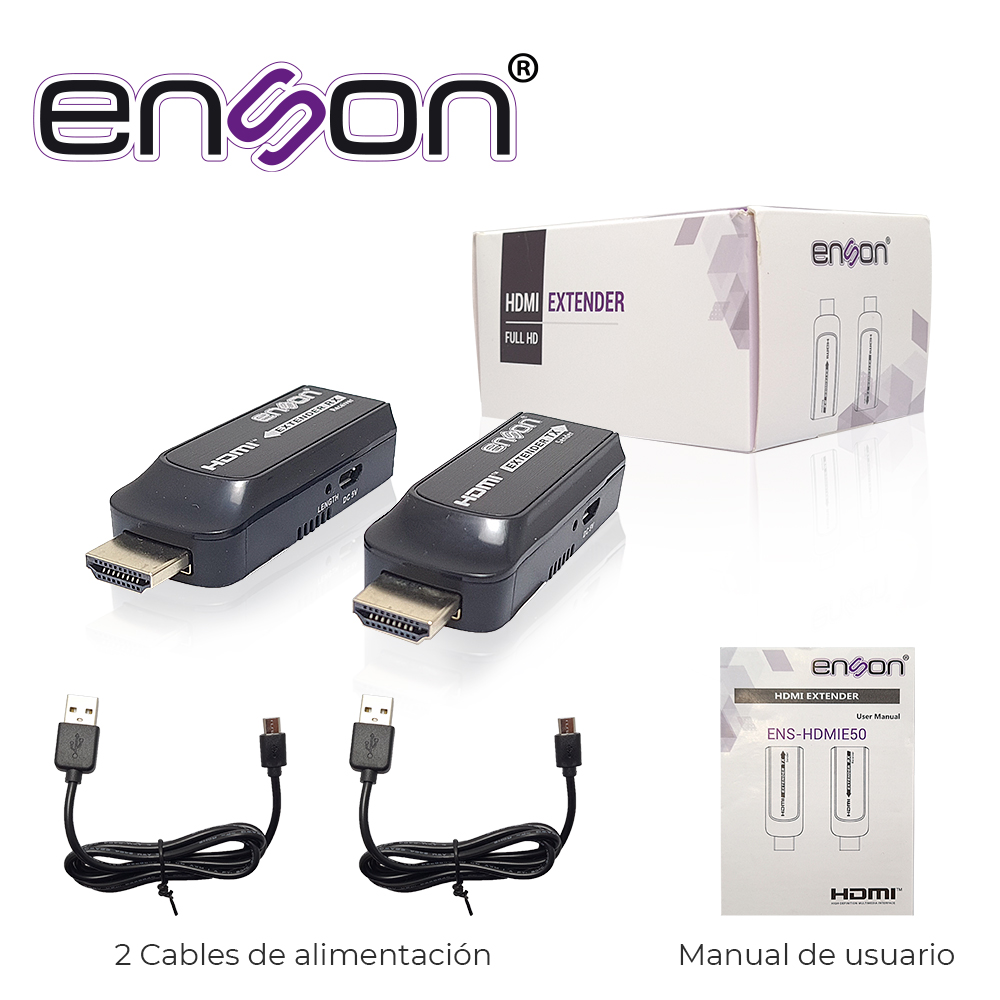 EXTENSOR HDMI ENSON ENS-HDMIE50 HASTA 50MTS DE TRANSMISION FULL HD 1080P@60HZ POR CABLE UTP CAT6/CAT6A/CAT7 DISEÑO MINIMALISTA