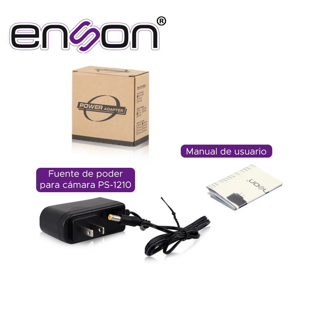 Descripción Descripción PS-1210 ENSON Entrada de energía:AC 100-240V 50/60Hz Salida de energía:12V - 1000mA (1A) Conector machoDocumentosFicha técnica