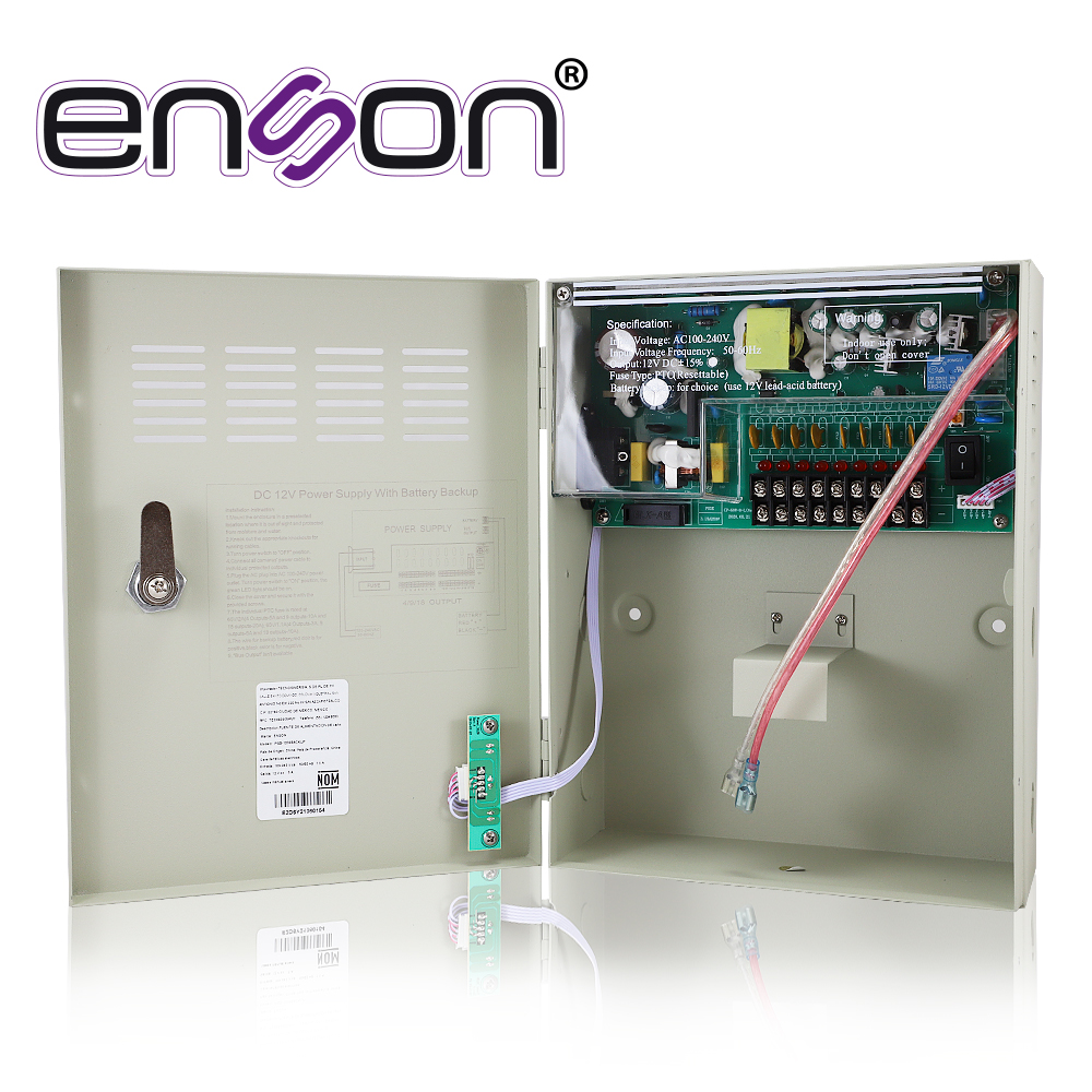 PSB-1218BACKUP ENSON La fuente de poder ENSON PSB-1218 Backup es una potente fuente de poder de 10Ampers ideal para conectar hasta 18 cámaras o controles de acceso. Cuenta con 18 salidas de corriente con fusibles individuales tipo PTC autorrecuperables que no requieren ser cambiados o sustituidos ya que al originarse un corto se restablecen de forma automática. Se encuentra equipada con un potenciometro que permite regular el voltaje dede 11.5 hasta 13.9Volts. Este equipo trabaja con poca energía y de forma silenciosa. Salidas:18 puertos Voltaje de entrada.-AC100~240V Voltaje de salida:DC 12V Max. corriente de salida:10A Tipo de fusible:PTC Máx. corriente por canal:1.1A Respaldo.-Entrada automática ante la caída de fuente de alimentación principal Dimensiones:210x 90 x 265mm Peso:2kg Temperatura de almacenamiento:-30°C ~ 70°C Temperatura de funcionamiento:-10°C ~ 45°C Para uso en interiores