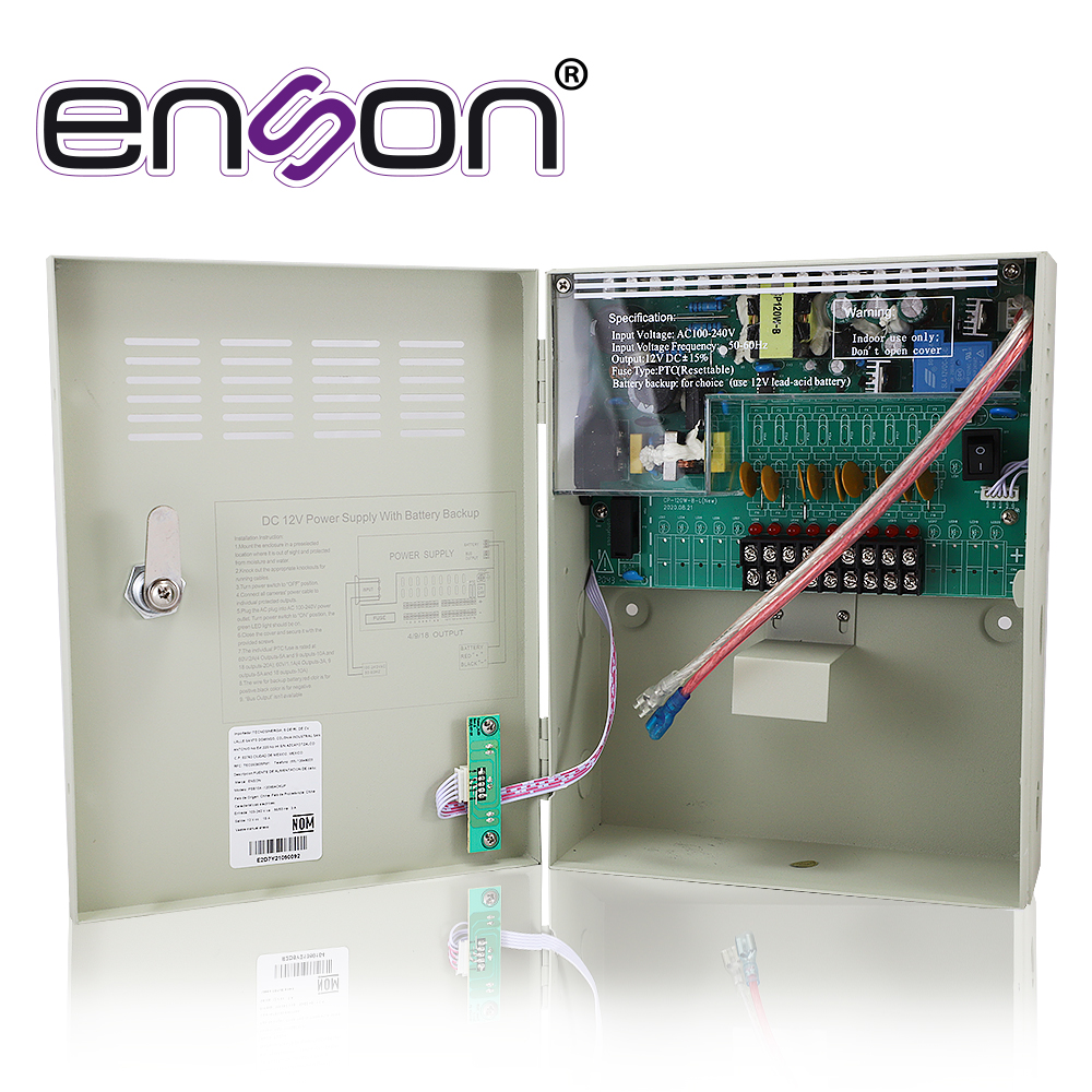 PSB10A-1209BACKUP ENSONFUENTE DE PODER TIPO CAJA PARA CAMARAS 12V 10A ENSON PSB10A-1209BACKUP9CAM CON RESPALDO Y CARGADOR NO INCLUYE BATERIA. COMPATIBLE CON BT412 Este kit es recomendado en aplicaciones de CCTV y CONTROL DE ACCESO Canales: 9 Voltaje de entrada: 100 ~ 240VAC Voltaje de salida: 12VCD Amperaje de salida: Hasta 10A Protección: PTC autorrecuperable Amperaje por canal: 1.1A Tiempo de transferencia: 0 Segundos Batería compatible: ENS-BT412