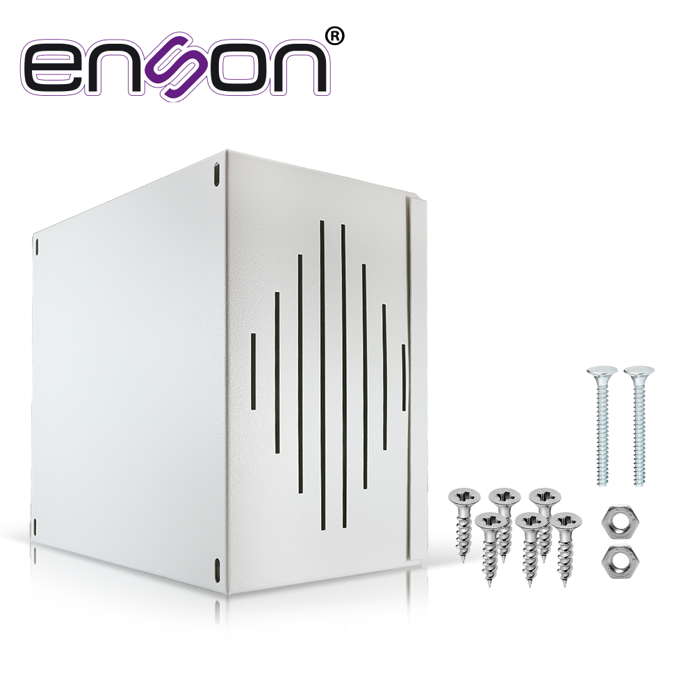 LINCE11 ENSONCaracterísticas Funcionales: Diseñada para instalar en exterior de la vivienda. La bocina de 30 W (No incluida) se atornilla a una tapa interior y después esta tapa se fija al gabinete con ayuda de tornillos tipo Phillips. Cuenta con preparación para instalar un Switch Tamper (no incluidos), La tapa cierra con un par de tornillos tipo Phillips (incluidos). Cuenta con perforaciones para pasar el cableado al exterior del gabinete. Características Físicas: Pintura: Beige Electroestática. Aplicación: Exterior. Material: Acero calibre 26. Unidades Rack: N/A. Peso: 0.97 Kg. Dimensiones exteriores: 203 X 244 X 155 mm (Ancho x Alto x Profundidad).