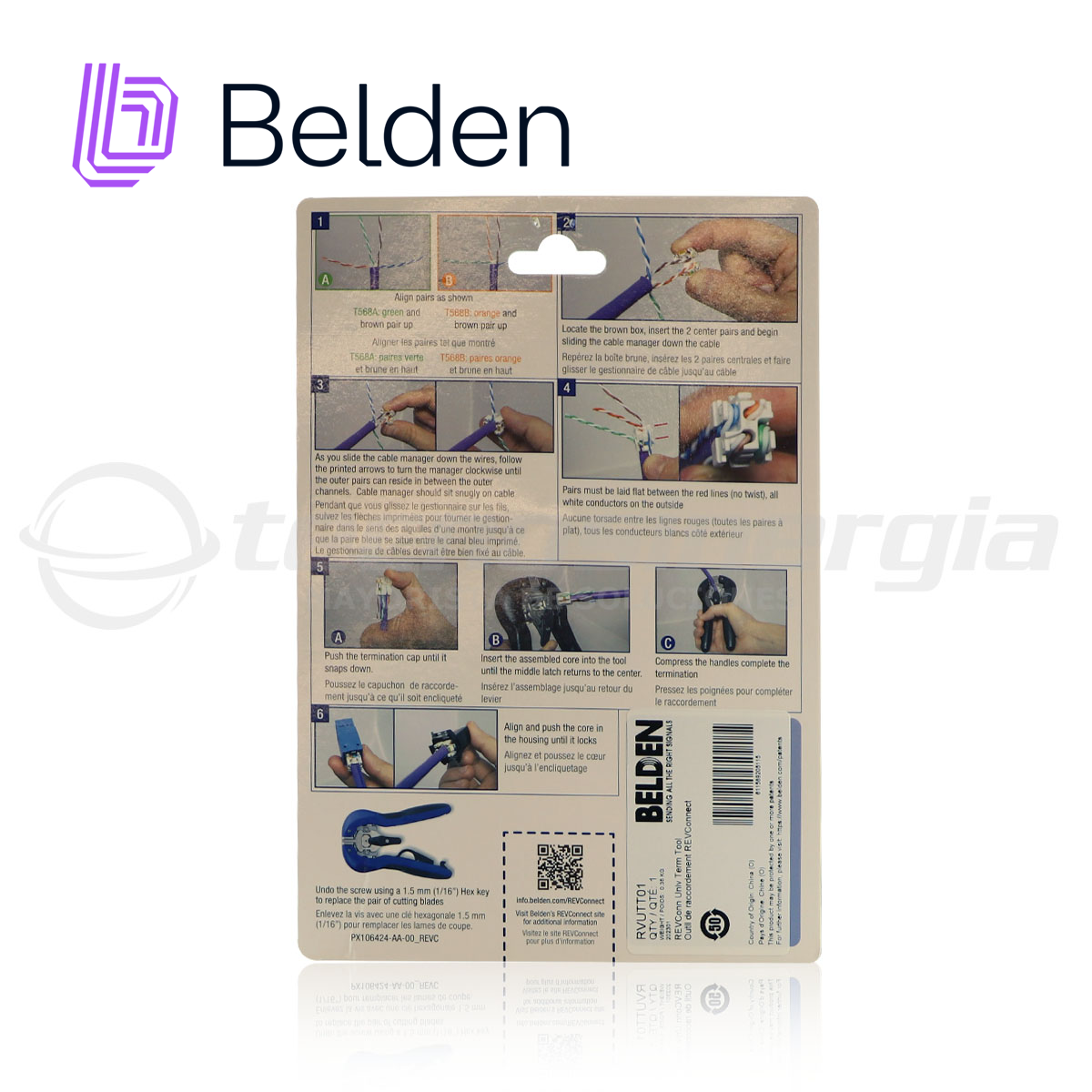 Descripción Descripción RVUTT01 BELDEN Accesorios de conectividad - Herramienta de terminación REVConnect Ponchado JACK Y PLUGS REVCONNECT Color azul Uso interiorDocumentosFicha técnica