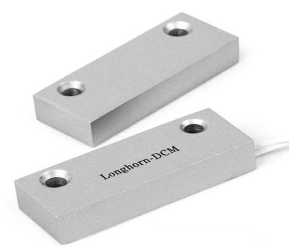 El IHORN HO-03F es un contacto magnético de uso rudo, con recubrimiento de metal diseñado específicamente para entornos donde un sensor de plástico común no duraría, como cortinas metálicas, portones o puertas industriales.