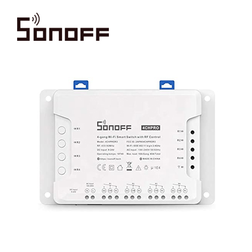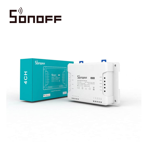 Sonoff 4CH R3El interruptor Sonoff 4CH R3 permite controlar de 4 aparatos eléctricos, que se pueden ser activados o desactivados por separado con los botones locales o con la aplicación eWeLink desde iOS / Android. Además puede verificar el estado de los dispositivos en tiempo real. Controla equipos con alimentación de corriente alterna desde 100 y hasta 240 VCA de con su 4 salidas que operan de manera independiente de manera que no debas apagar o encender todo cuando no se necesitaEl gabinete es compatible para ser montado sobre Riel Din. Permitiendo ser utilizado en la industria y dentro de los racks de equipos.Sonoff 4CH R3 hace que todos los dispositivos sean inteligentes solo conectalo a tu red WiFi de 2.4 GHz y una vez hecho tu celular o tableta puede estar en cualquier red con internet (2G / 3G / 4G / WiFi) ahora los usuarios podrán controlar remotamente los dispositivos y encenderlos desde cualquier lugar en cualquier momento, además de poder establecer temporizadores de todo tipo para el control de los mismos de manera diferente en cada uno Características Admite red WiFi. Admite el seguimiento de estado: estado del dispositivo proporcionado por la App EWeLink. Admite encender y apagar 4 aparatos de forma remota e independiente. Admite un máximo de 8 temporizadores programados, de cuenta regresiva y de bucle para cada dispositivo. Admite múltiples dispositivos en el mismo teléfono inteligente. Funciona con Amazon Echo, Google Home, Google Nest, e IFTTT (requiere una cuenta EweLink VIP)