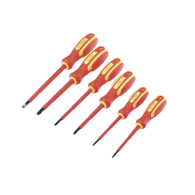 Mejora eficiencia y seguridad en trabajos eléctricos con este juego de 6 desarmadores aislados bicolor de 1000V, que cumplen con la Norma IEC 60900, Diseñados para ofrecer la máxima protección y un rendimiento óptimo, este set es esencial para cualquier profesional o aficionado que trabaje con electricidad.