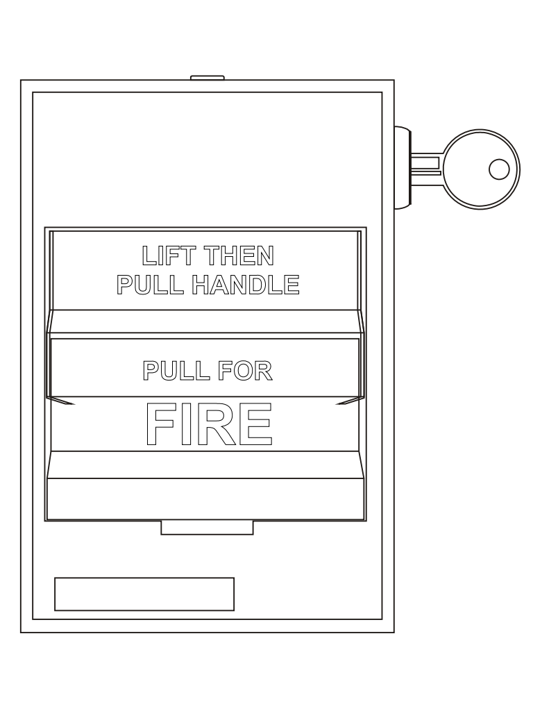 La estación GSA-M278 de una sola etapa y doble acción de Kidde es una estación manual de estilo contemporáneo hecha de lexan duradero de color rojo. Para iniciar una alarma, primero levante la puerta superior marcada "LEVANTAR Y TIRAR LA MANIJA", luego tire de la manija de la alarma.