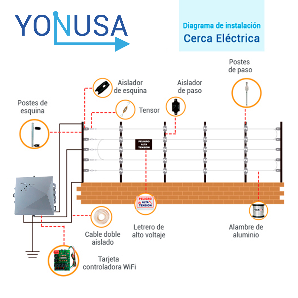 KIT DE CERCA ELECTRIFICADA CON ACCESORIOS PARA 50METROS INCLUYE: ENERGIZADOR, BATERIA ENS-BT412, CABLE, ALAMBRE, POSTES, LETREROS Y TENSORES El energizador con el cual cuenta el kit permite tener una distancia máxima de 2500 metros lineales, la batería incluida provee de un respaldo de hasta 2 días. Características del energizador Gabinete NEMA 2 briznas y lloviznas. Dimensiones: 36 cm x 25.5 cm x 11 cm. Poliestireno Alto Impacto. Retardante a la flama (cumple con Norma V0). Peso 3.4 kg aproximadamente. Protección contra rayos ultravioleta. Protección antioxidante. Alimentación 90-220Vac 50-60Hz o Panel Solar 12Vdc. Salida auxiliar 12V, 0.4 Amp. para alimentación de sirenas, interrupciones, sensores, luces estroboscópicas, etc. Salida de alto voltaje pulsante auto programable al cerco (no requiere instalación manual). Salida temporizada para sirenas desde 1 minuto hasta 60 minutos (Solo equipos con interface). Aviso de sirena en caso de falla del equipo y auto restablecimiento de sirena en caso de caída a tierra momentáneo. Rango de operación -20°C hasta 120 °C. Electrónica de estado sólido grado militar Cargador de batería de respaldo hasta 40 amp/hora. Puerto de alimentación para panel solar. Salida para contacto seco para automatización. Máximo factor de humedad 72%. Máximo factor de vibración 12 Hz/cm. Inmune a RF. Frecuencia de operación de salida: 1Hz. Características de la batería Durable Soporta altas temperaturas sin embargo reduce su durabilidad. Características del alambre Hecho de aluminio. Anti-oxidación. Resistente a la corrosión. Calibre 14. Fácil manejo.