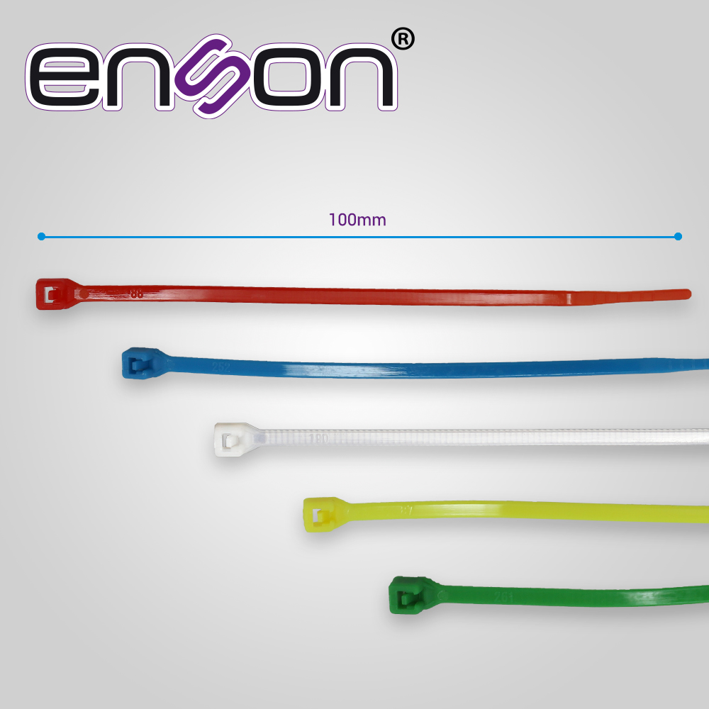 ENS-CHKIT2 ENSON KIT DE CINCHOS DE NYLON ENSON La forma más fácil de organizar cables, sujetar objetos y miles de usos en los cuales te pueden ayudar. Simplemente hay que cerrarlo y listo, su gran resistencia será de gran utilidad para tus instalaciones y reparaciones en hogar y oficina. El kit contiene diferentes medidas de forma que obtengas todo lo que necesitas en un solo empaque. Características Material: Nylon 66 100 piezas 100 mm rojo 100 piezas 100 mm azul 100 piezas 100 mm blanco 100 piezas 100 mm Amarillo 100 piezas 100 mm Verde
