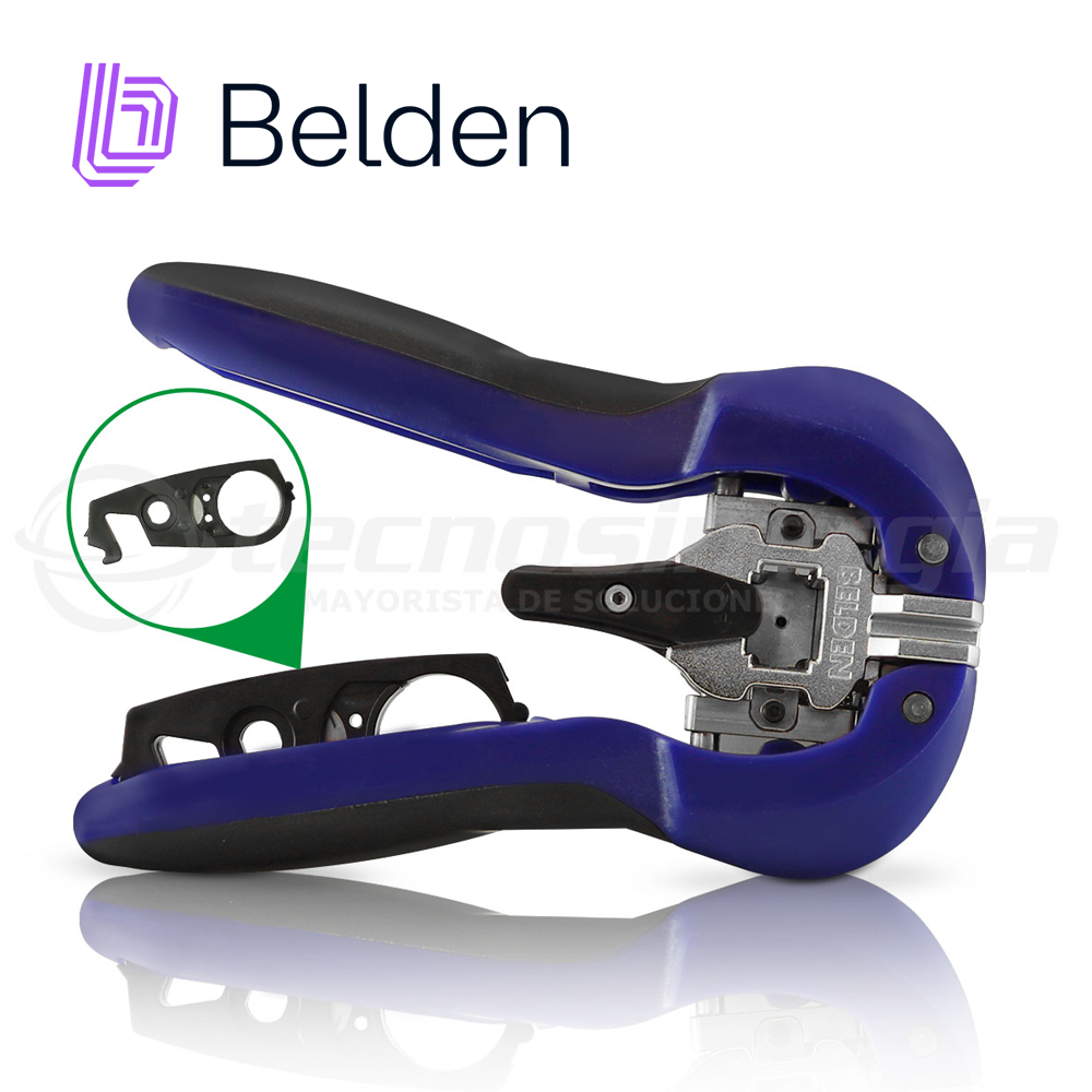 . BEL-TOOLSKIT BELDEN KIT DE HERRAMIENTAS PARA CERTIFICACION BELDEN Incluye RVUTT01 HERRAMIENTA DE TERMINACIÓN REVCONNECT Esta herramienta es utilizada para conectores jack y plug REVCONNECT RV6MJKURD-S1 CONECTOR MODULAR JACK RJ45 CAT6 REVCONNECT Jack modular REVConnect CAT6 UTP Esquema de cableado: T568A / B AX101320 CONECTOR MODULAR JACK RJ45 CAT6 Jack modular RJ-45 de impacto AX104152 CONECTOR MODULAR JACK RJ45 CAT6A Jack modular RJ-45 categoria 6A, Naranja. Compatibilidad de herramienta de conexión Belden 110. AX100749 PINZAS PONCHADORAS DE JACK Con navaja estilo 110 RVAFPUBK-S1 CONECTOR PLUG REVCONNECT Conector tipo RJ45 Certifiable 1797B 009 HERRAMIENTA DE SEPARACION PAR PEGADO Ayuda a separar los pares trenzados y pela la cubierta externa del cable sin dañar los conductores internos y el aislamiento.