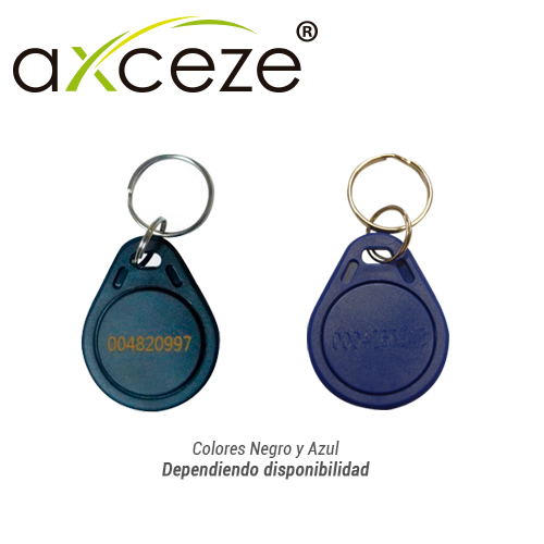 AXCEZE AX-TAG100Los llaveros de proximidad Axceze RFID (Identificación por radiofrecuencia) que permiten la identificación del portador además ofrece tecnología de proximidad formato ISO.En el caso de los llaveros también hay diferentes modelos y por sus características podrá llevar su dispositivo junto con las llaves de su casa oficina o auto y no sentirá siquiera que carga algo más. Se utilizan para aplicaciones tales como sistemas de control de acceso sistemas de asistencia gestión de visitantes y así sucesivamente.Son compatibles con todos los lectores de proximidad de Axceze y son ideales para establecimientos donde se cuente con lectores RFID y en donde la lectura de huellas es complicada debido al desgaste natural de la misma.