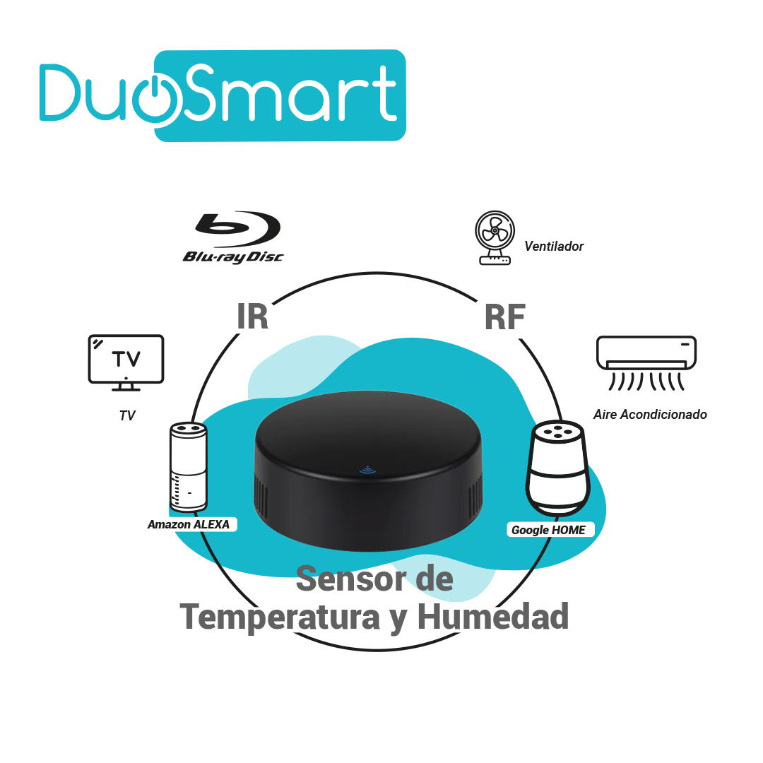 MODULO IR + SENSOR DE TEMPERATURA Y HUMEDAD WIFI 2.4GHZ DUOSMART L30 CONTROLA EQUIPOS QUE USEN CONTROL REMOTO INFRARROJO CON MONITOREO DE TEMPERATURA Y HUMEDAD AMBIENTAL COMPATIBLE CON APP DUOSMART