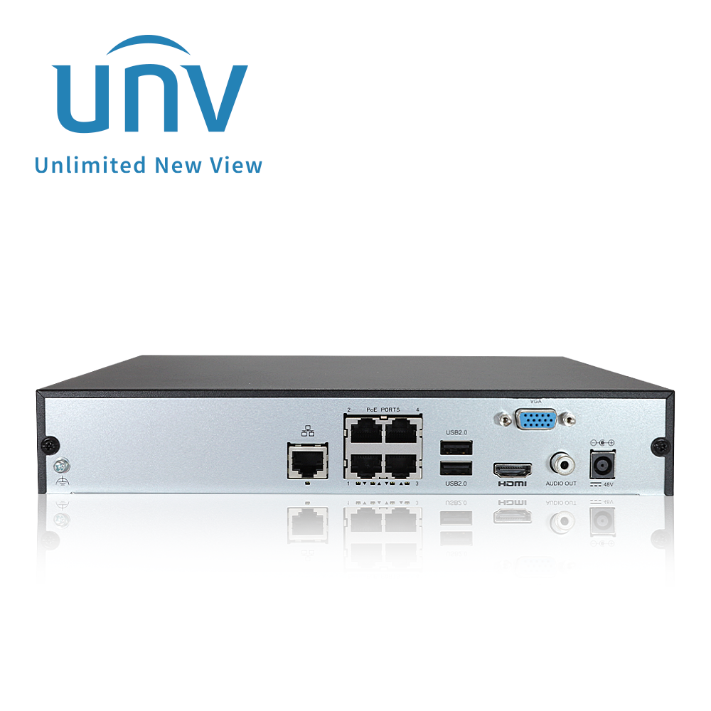 Características: Soporta formatos de video Ultra265 / H.265 / H.264 Entrada de 4 canales Plug & Play con 4 interfaces de red PoE independientes Cámaras IP de terceros compatibles con la conformidad con ONVIF: perfil S, perfil G, perfil T Admite HDMI de 1 canal, VGA de 1 canal Grabación con resolución de hasta 4K 1 HDD SATA, hasta 8 TB Soporte de actualización en la nube Funciones S.M.A.R.T:Analíticos que se pueden configurar desde el NVR, compatibles con cámaras UNV que incluyan estas funciones.