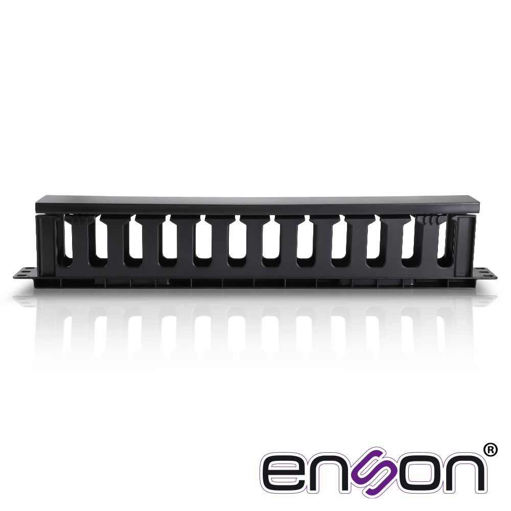 ENS-CM14 ENSONPara una apariencia completamente cerrada y organizada Enson ofrece los organizadores de manejo de cables horizontales.Este diseño proporciona la organización mientras que mantiene los cables ocultos.Las tapas se pueden quitar fácilmente y vuelven a unir proporcionando un acceso rápido y fácil a la vez son parte delantera y trasera de un rack.Para evitar la mala colocación de las tapas los soportes también están disponibles con una tapa abatible que permite una fácil apertura y cierre sin necesidad de retirar la cubierta entera.Ideal para instalaciones de alta densidad los soportes de organización de cable cuentan con los bordes suaves ranurados que permiten tirar el cable a través en cualquier ubicación sin maltratarlo.El modelo Enson ENS-CM14 es de 19" 1U que le ayudara a tener una organización de facil acceso y limpia de su cableado.Ideal para la organización del cableado en rackDimensiones: 482.6 mm (Largo) x 70 m x (Alto) 44.5 mm (Ancho)Material: Plastico ABSSlots (ranuras): 12