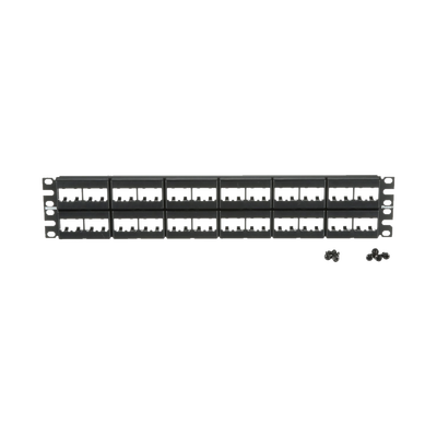 Los paneles de parcheo modulares consisten en un panel de metal con placas frontales moldeadas a presión que se pueden soltar por la parte delantera. Los paneles de conexión aceptan todos los módulos Mini-Com® para aplicaciones UTP, STP, fibra o A / V y deben montarse en Rackso o Gabinetes estándar de 19'. Los paneles de conexión estan disponibles en densidad estándar de 24 y 48 puertos y alta densidad de 72 puertos. Los paneles de conexión angulados se diseñarán en un ángulo óptimo para ayudar a enrutar el cable.