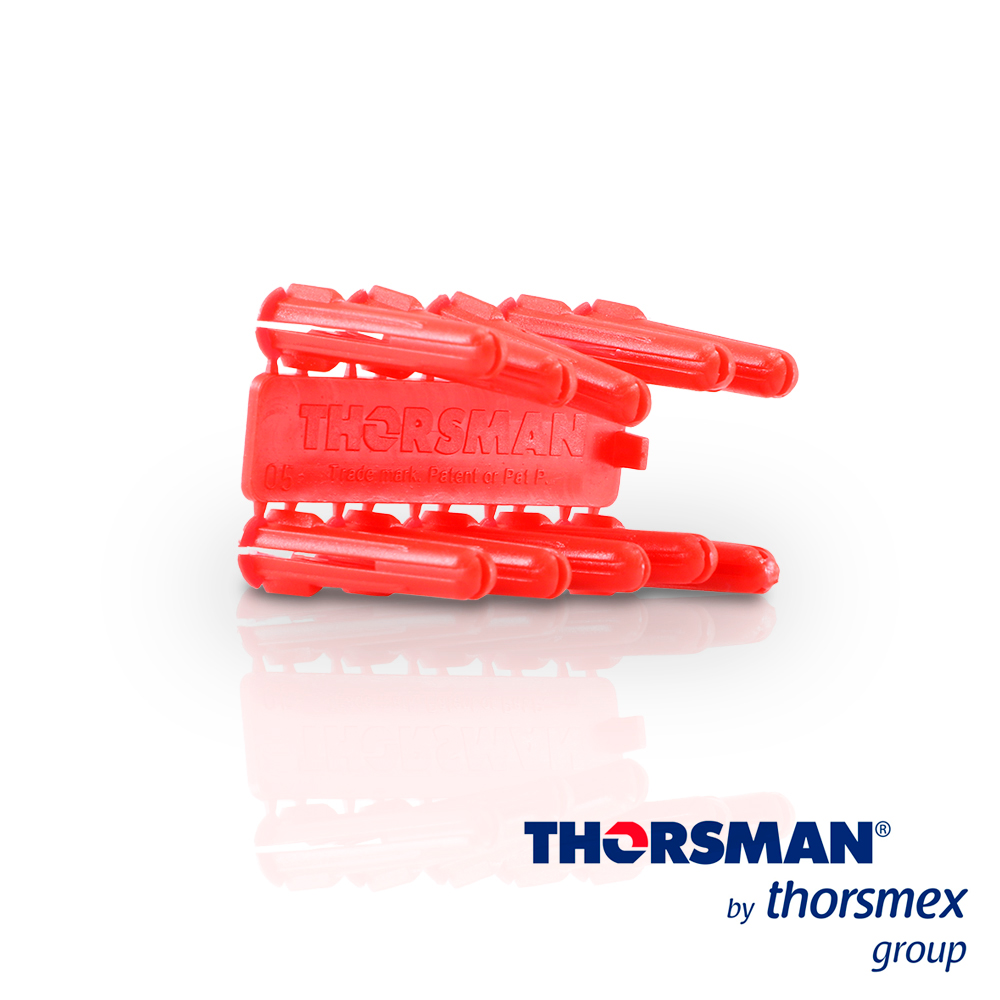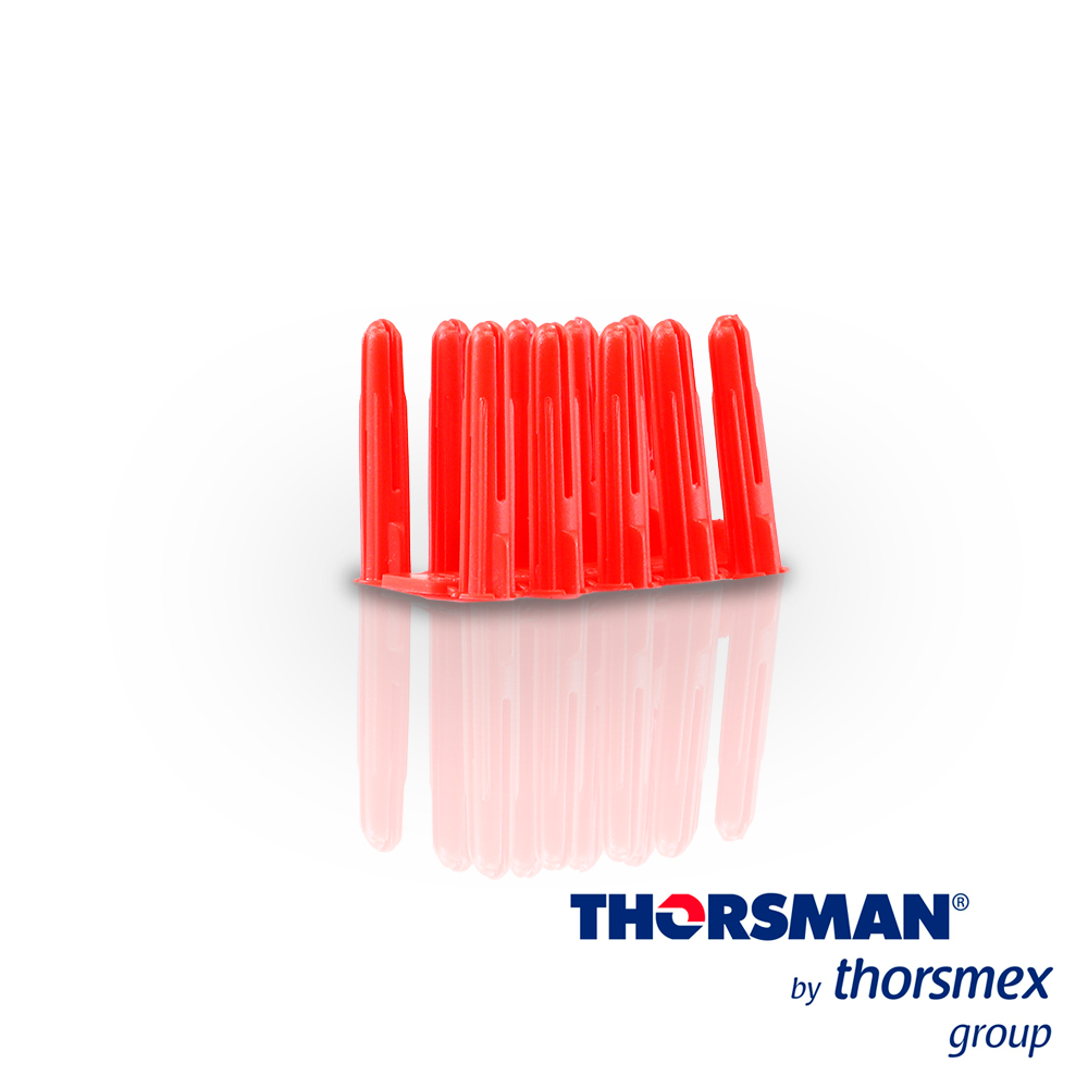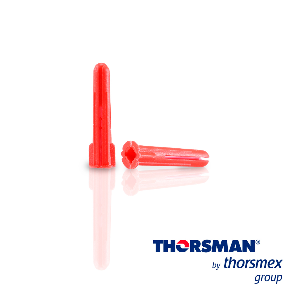 Taquete Rojo TP2X Thorsman 1103-03100 Taquetes de plástico Thorsmex para fijar objetos con tornillo en muros y techos de concreto o superficies sólidas. Posee un cuello que impide que el taquete se hunda aún cuando la perforación sea más profunda, tiene una guía que permite que el tornillo se introduzca correctamente.