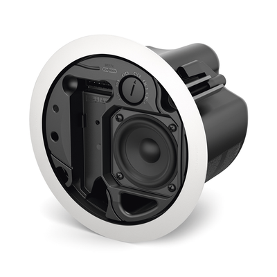 El FS2CW es un modelo para montaje en techo con un transductor de rango completo de 57 mm (2.25"), rango de baja frecuencia de hasta 83 Hz y una sensibilidad de 86 dB SPL/1 W a 1 m.