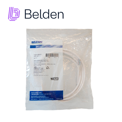 CA21109010 BELDEN Patchcord UTP CATEGORIA 6A, CMR, T568A / B-T568A / B, Blanco, 10 pies (3 metros). Conductor calibre 24 AWG Tipo Solido 100% cobre Numero de conductores 8 Máxima tensión de tracción recomendada: 25 lbs. Uso interior Color Blanco Partes relacionadas: jack modulares 10GX, patch panel CAT 10GX Plug / Jack Compatibilidad: RJ45