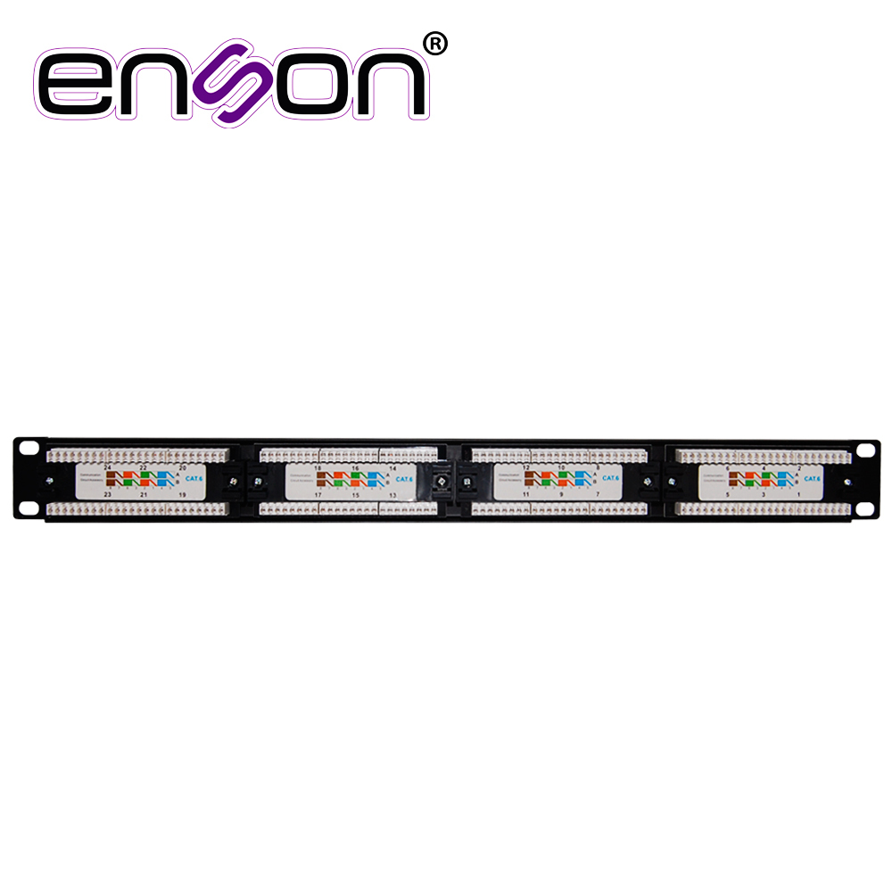 PATCH PANEL ENSON ENS-PA24P6 1UR PRECARGADO CAT6 24 PUERTOS MONTAJE EN RACK ESTANDAR 19 PULGADAS