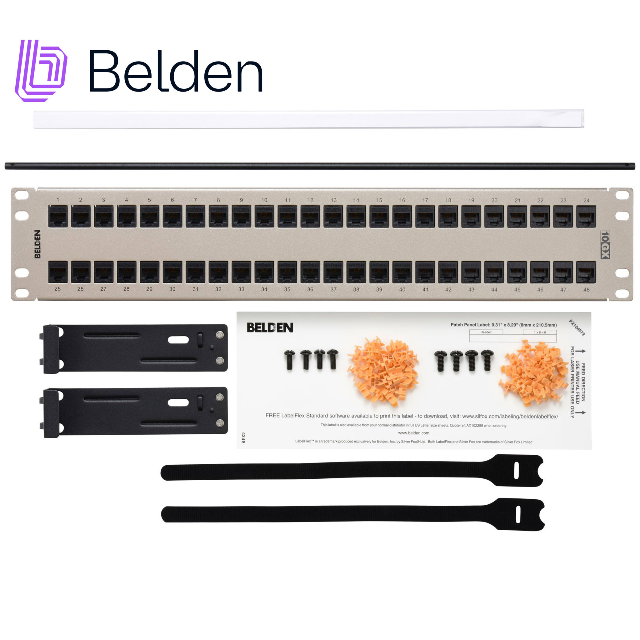 Descripción Descripción BELDEN AX103256 PATCH PANEL BELDEN 48PTOS 2U PRECARGADO Categoria 6A. Cuenta con 48 puertos RJ45 listo para conectarlos. Ideal para cable UTP Cat 6A. Ocupa 2 unidades de rack. Color titanio. Piezas relacionadas: Patchcord modulares 10GXDocumentosFicha técnica