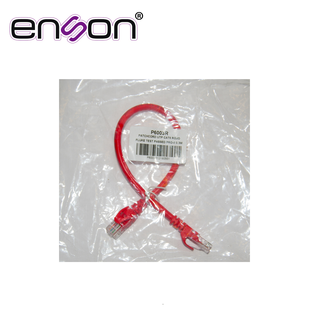 PATCHCORD UTP ENSON P6003R CAT6 30CM ROJO SERIE EPRO 100-II 100 POR CIENTO COBRE PARA MEJOR IDENTIFICACION DE SOLUCIONES EN RACKS Y GABINETES