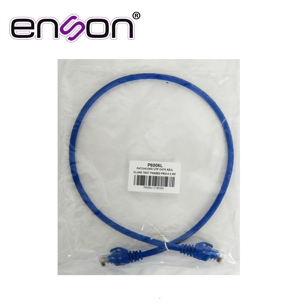 PATCHCORD UTP ENSON P6006L CAT6 60CM AZUL SERIE EPRO 100-II 100 POR CIENTO COBRE PARA MEJOR IDENTIFICACION DE SOLUCIONES EN RACKS Y GABINETES