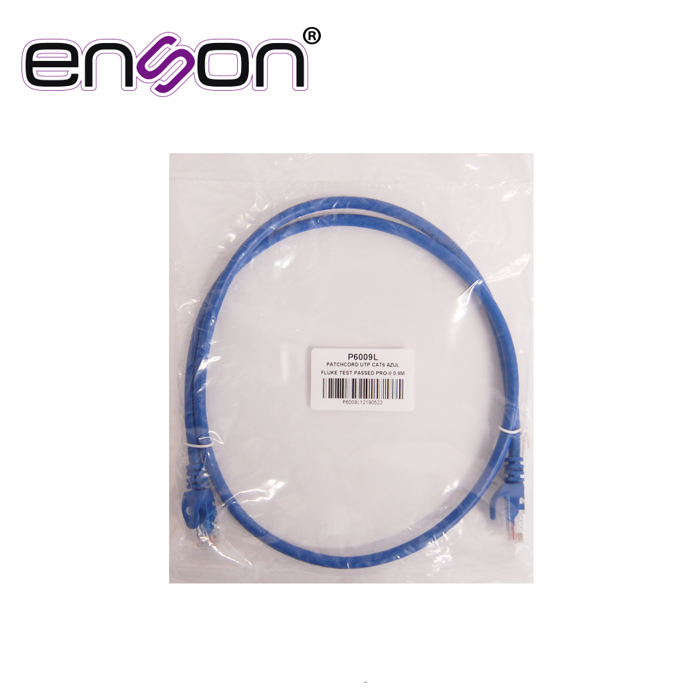 P6009L ENSONPatch cord categoria 6, 4 pares solido, 24 AWG, 568B. Numero de pares 4 Calibre 24AWG Esquema de cableado:T568B Enchufe / Jack Compatibilidad:RJ45 Categoría de datos: Categoría 6 Partes relacionadas:Conectores y conectores modulares CAT6 , paneles de conexión CAT6 Uso interior Conductor tipo solido Color:AzulLongitud:3 FT 90 CMS