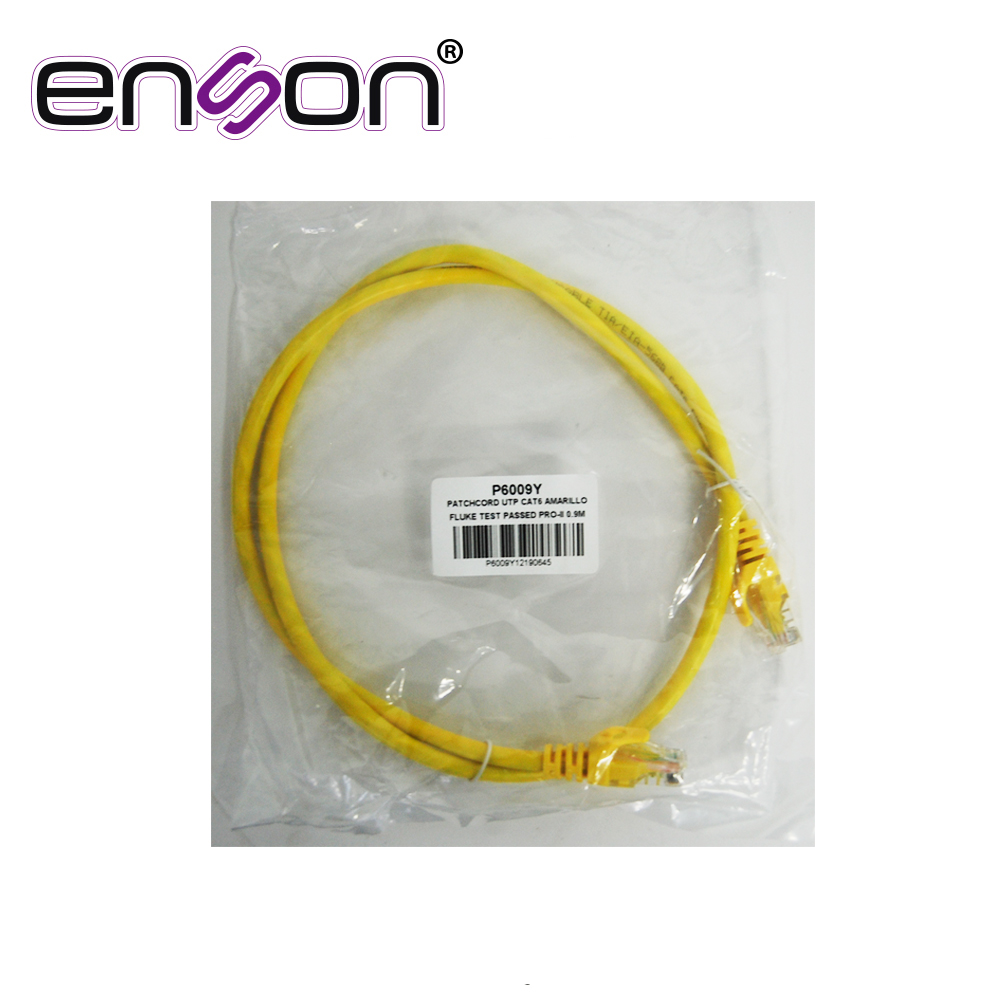 P6009Y ENSONPatch cord categoria 6, 4 pares solido, 24 AWG, 568B. Numero de pares 4 Calibre 24AWG Esquema de cableado:T568B Enchufe / Jack Compatibilidad:RJ45 Categoría de datos: Categoría 6 Partes relacionadas:Conectores y conectores modulares CAT6 , paneles de conexión CAT6 Uso interior Conductor tipo solido Color:Canario Longitud:3 FT 90 CMS