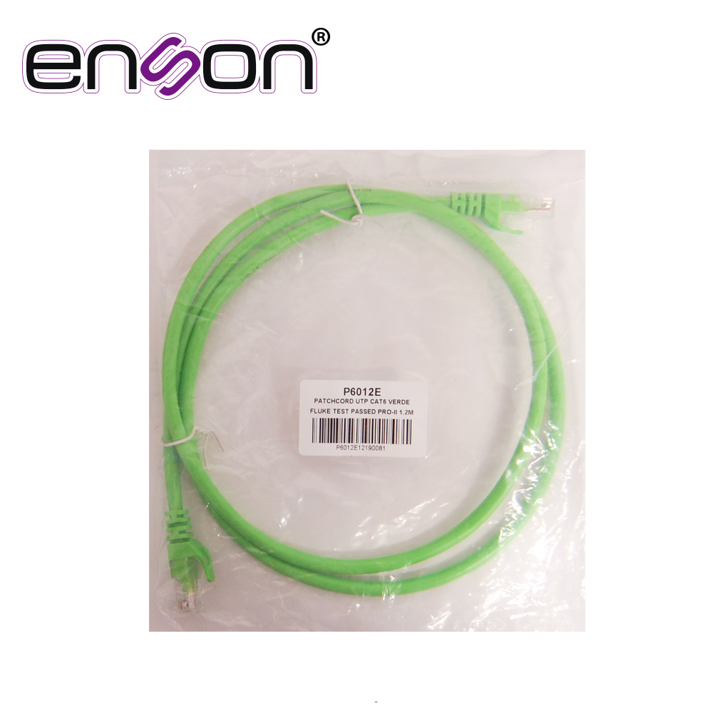 P6012E ENSONPatch cord categoria 6, 4 pares solido, 24 AWG, 568B. Numero de pares 4Calibre 24AWGEsquema de cableado:T568BEnchufe / Jack Compatibilidad:RJ45Categoría de datos: Categoría 6Partes relacionadas:Conectores y conectores modulares CAT6 , paneles de conexión CAT6Uso interiorConductor tipo solidoColor:VerdeLongitud:4 FT 120 CMS