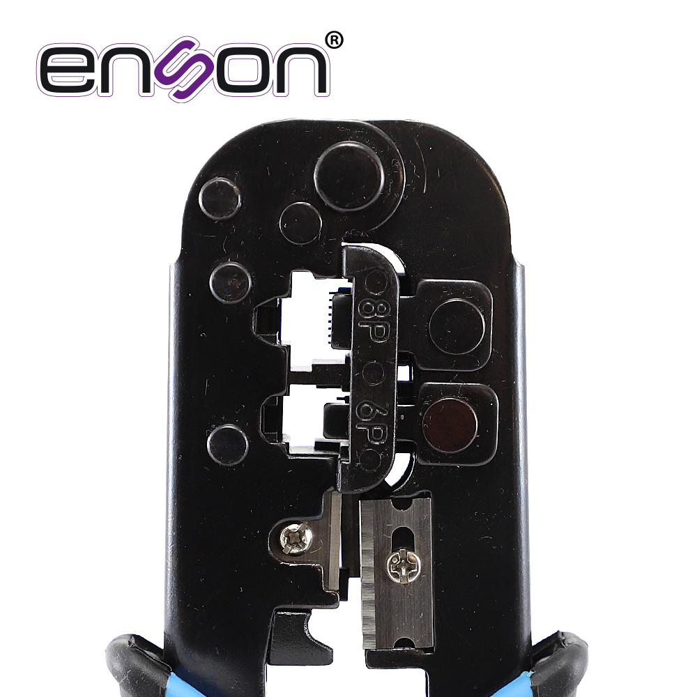 Descripción Descripción ENSON ENS-NT02 Pinzas crimpeadoras para conector Plug RJ45. Compatble para Cat5E y Cat6. Cuenta con seguro de apertura. Capaz de crimpear conectores de 8 y 6 posiciones. Cuenta con navajas corta cable.DocumentosFicha técnica