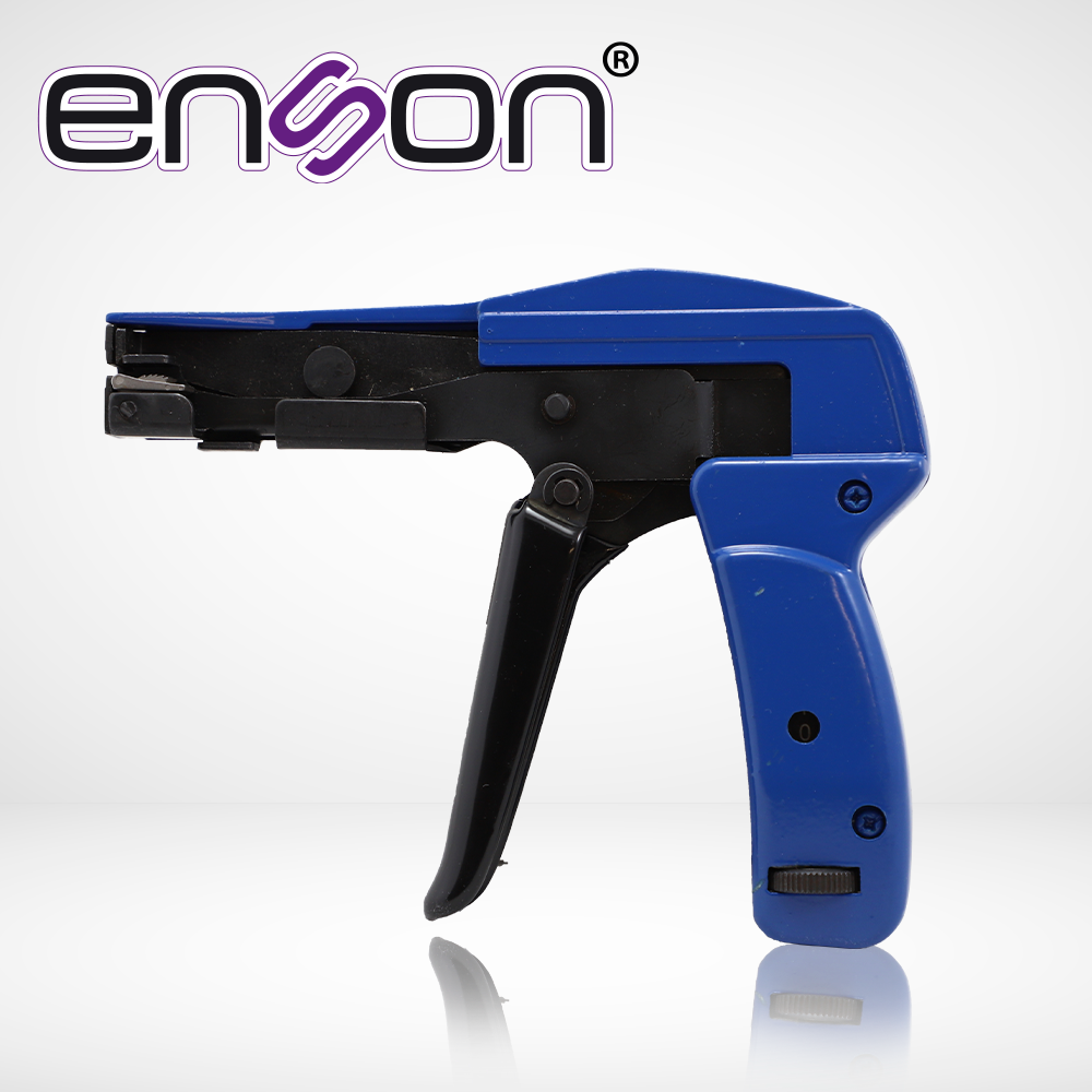 ENS-TGUN ENSON Herramienta utilizada para asegurar cinchos o sujetadores de plástico alrededor de objetos para mantenerlos juntos o asegurados La pistola para cinchos es una herramienta eficiente y confiable que agiliza el proceso de asegurar objetos con cinchos de plástico. Su diseño ergonómico y duradero la convierte en una opción popular en una variedad de aplicaciones, desde la industria de embalaje y envío hasta trabajos de construcción y sujeción general. Antes de utilizar la pistola para cinchos, debes asegurarte de tener los cinchos adecuados