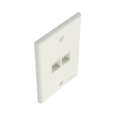 Placa de Pared Vertical, Salida Para 2 Puertos Keystone, Color Blanco Mate