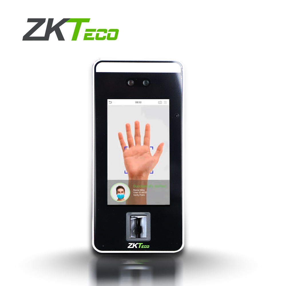 Control de acceso con reconocimiento facial y detección uso de cubrebocas SpeedFace V5L-[P] La serie SpeedFace-V5L son dispositivos de control de acceso de nueva generación que incorporan múltiples métodos de identificación biométrica. Combinando avanzados algoritmos de reconocimiento facial y la última tecnología de visión computarizada, reconoce una gran cantidad de rostros y palmas de forma ultrarrápida, sin contacto, aumentando la seguridad e higiene en todos los aspectos. La serie SpeedFace incorpora el algoritmo facial Visible Light que permite el registro masivo e independiente de rostros de forma remota al sincronizarse con un software centralizado (ZKBio CVSecurity / BioTime Pro /ZKBio CVAccess). La doble cámara de reconocimiento facial anti-falsificación también incluye tecnología de reconocimiento de palma 3-en-1 (forma, minucias y venas) identificando hasta 6,000 rostros y 3,000 palmas. El reconocimiento biométrico sin contacto, proveen soluciones de control de acceso/gestión de asistencia que reducen el riesgo de contagio en zonas clave. Reconocimiento facial de luz visible (Visible Light) Mejor higiene con autenticación biométrica sin contacto e identificación individual. Detección de alta velocidad de 0.1 s, distancia de medición de 30 - 120 cm Algoritmo anti-spoofing contra ataque de impresión (láser, color y fotos en B / N), ataque de videos y ataque de máscara 3D Múltiples métodos de verificación: rostro / palma / huella digital / contraseña Compatible con BioTime Cloud 2.0 Solucion 100% en la nube.