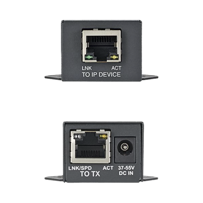 - Fuente de alimentación opcional (No incluida): los extensores PoE aceptan una fuente de alimentación con una salida de 55 Vcc/2Amp (se requieren 37 a 56 Vcc, se recomiendan 48 a 55 Vcc)