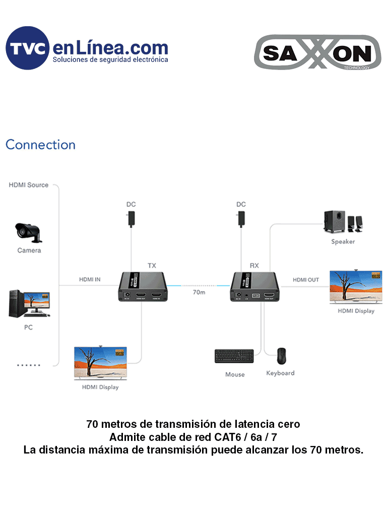 La resolución más alta admitida es 1920 × 1080 @ 60 Hz, solo se necesita un adaptador de alimentación para el transmisor, el receptor funciona con el transmisor a través del cable CAT6. Solución ideal para exhibición HDMI, videoconferencia y centro de espectáculos, etc.