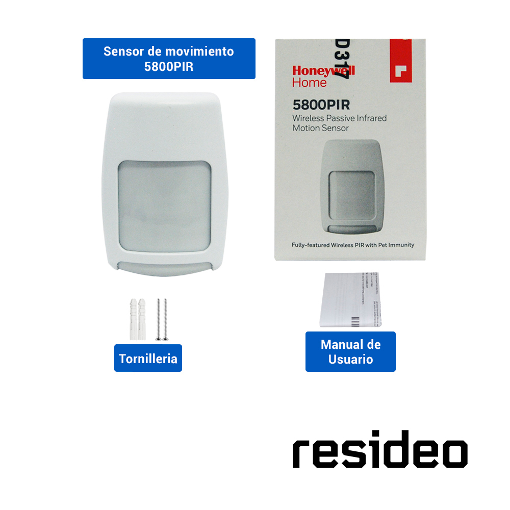 SENSOR DE MOVIMIENTO INALÁMBRICO ANTIPET HONEYWELL 5800PIR La serie de detectores de movimiento inalámbricos Honeywell Home 5800PIR son sensores de alto rendimiento y fáciles de instalar con diseños elegantes y compactos que son ideales para aplicaciones donde la estética o la discreción son fundamentales. En el 5800PIR y 5800PIR-COM, la sensibilidad PIR y la detección de temperatura se pueden habilitar mediante programación local o desde la estación central. La instalación es fácil, sin puentes, interruptores ni desmontaje, menos restricciones de montaje y un modo de prueba de caminata automática que enciende el LED de prueba de caminata durante diez minutos, lo que ahorra a los instaladores un viaje por la escalera por cada sensor. Otros beneficios notables incluyen menos llamadas de servicio gracias a una batería de larga duración y carcasas vacías que permiten a los diseñadores y usuarios finales pintar de manera personalizada los detectores de movimiento para que coincidan con cualquier entorno residencial o comercial ligero. El 5800PIR se combina perfectamente con toda la familia de sensores de la serie 5800 para una apariencia perfecta.