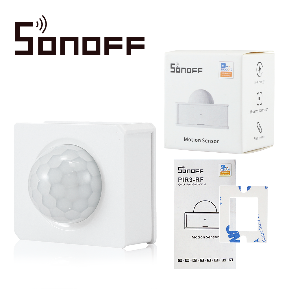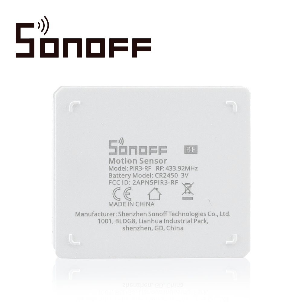 Sonoff Sensor PIR3El sensor de movimiento PIR3 SONOFF con señal RF de 433 MHz para detección humana; es indispensable contar con el Bridge RF 433 de SONOFF en conjuntol, puede mandar un mensaje de alarma cuando detecta a alguien y que se reciba una notificación en la app eWeLink de tu celular. El sensor PIR3 está diseñado para una vida útil más larga con microprocesadores de potencia ultra baja.El sensor de movimiento es fácil de instalar y configurar, montado en la pared. Es robusto y duradero, adecuado para el hogar, oficinas, tiendas, garajes, etc. Ofrece una vida más segura para sus familiares y amigos.Características: Microprocesadores de energía ultra baja. Tecnología de compensación de doble temperatura. Fácil instalación y configuración. Compatible con equipoRF Bridge Especificaciones: Distancia de transmisión: 150mts (sin obstáculos). Corriente en espera: 9mA. Corriente de alarma: 10 mA. Frecuencia inalámbrica: 433,92 MHz. Código de transmisión inalámbrica: EV1527 Distancia máxima de detección: \1;8mts Ángulo de detección: 100 grados. Indicador de alarma de luz: encendido durante 3 segundos. Entorno de trabajo: interior Tipo de batería: tipo bóton CR2450 3 volts (no incluída) Tamaño del artículo: 40mm x 35mm x 28mm