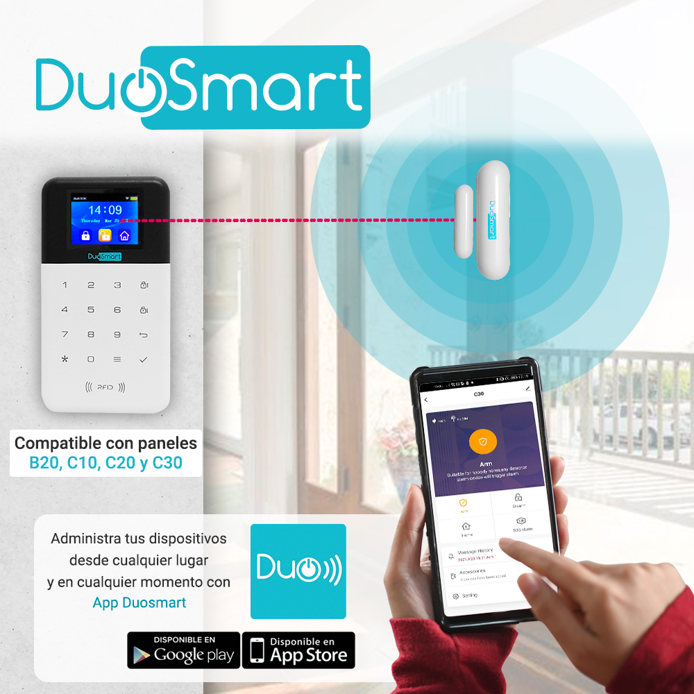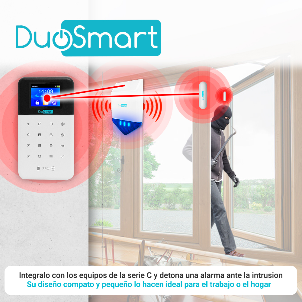 SENSOR MAGNETICO RF DUOSMART CDS1 El sensor magnético CDS1 de diseño compacto es adecuado para residencias y pequeños negocios, gracias a su diseño delgado se lleva bien con las decoraciones del hogar además de que siempre estará protegido. Protege puertas y ventanas con esl CDS1 Cuenta con tamper para evitar robos o sabotajes del sensor magnético Especificaciones Uso interior Frecuencia 433.92 MHz Alcance de hasta 30m ( en línea de vista) Compatibilidad con paneles de la serie C Alimentación 12 VCD por medio de batería modelo 23A