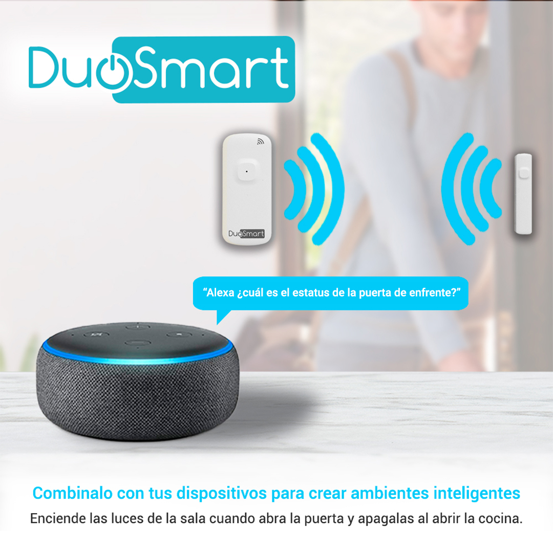 Sensor magnético inteligente WiFi Duosmart D10 Para saber si una puerta o ventana está abierta o cerrada, se requiere un contacto magnético que normalmente le reporta a un panel de alarma y no en todos los casos nos favorece el costo - beneficio de esa solución D10 es un contacto con batería recargable que al tener conectividad WiFi, puede notificar directamente a tu teléfono con ayuda de la aplicación Duosmart y a partir de allí enterate en todo momento cuando la puerta o ventana ha sido abierta o cerrada. Genera escenas de automatización en conjunto con otros dispositivos de la marca y has que cuando llegues a casa se enciendan los aparatos según tus gustos. Compatible con asistentes virtuales. Características Comunicación WiFi 2.4 GHz (no acepta banda 5 GHz) Batería recargable de 3.7 VCD a 500mAh Botón fisico de encendido y apagado Medición de la batería en la App Historial de cambios de estado Compatible con Alexa® y Google Home® Incluye cable de carga No incluye cargador