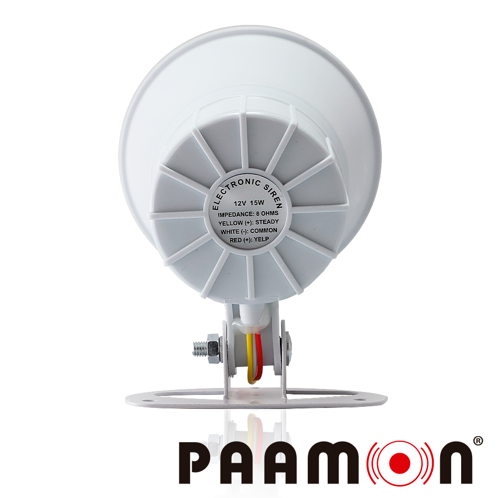 PAM-SRE15W PAAMON Sirena de doble tono compatible con diversos sistemas de seguridad, fabricada en plástico ABS para instalaciones en interior y exterior. Fácil instalación a dos hilos. Dos tonos independientes. Bajo Consumo de corriente. Compatible con todos los sistemas de alarma. Voltaje de operación 12 VDC Consumo de corriente 1A Nivel de sonido 100 a 110 dB Material ABS Color Blanco Temperatura de operación -10 °C a 50° C Peso 400 g. Humedad 5% - 95%