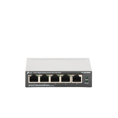 Switch Escritorio No Administrable de 5 puertos 10/100/1000 Mbps / Con 4 puertos PoE 802.3af/at de hasta 65 W / PoE Extendido hasta 250 metros