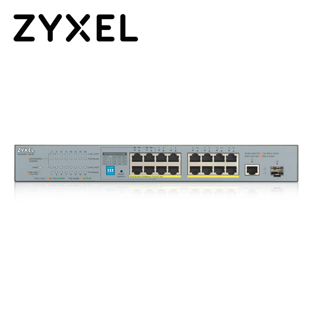Switch Zyxel GS1300-18HP: Potencia y alcance para tu sistema de videovigilancia ¿Qué es? El Zyxel GS1300-18HP es un switch no gestionable diseñado para sistemas de videovigilancia. Cuenta con 16 puertos PoE Gigabit Ethernet y dos puertos de enlace ascendente (uno Gigabit y otro SFP), lo que suma un total de 18 puertos. Su diseño robusto en color gris titanio y sus protecciones integradas lo hacen ideal para entornos profesionales. ¿Para qué sirve? Este switch es la solución perfecta para alimentar y conectar múltiples cámaras IP y otros dispositivos PoE (Power over Ethernet). Sus principales ventajas son: Gran capacidad de energía: Con un presupuesto total de 170W, el switch puede alimentar varias cámaras de alta potencia a la vez. Alcance extendido: En el modo de largo alcance, puede transmitir datos y energía hasta a 250 metros de distancia, superando el límite estándar de 100 metros. Monitoreo sencillo: Los indicadores LED en el panel frontal te permiten saber el estado de los puertos y te alertan si el consumo de energía se acerca al límite. Diseño profesional: Su fuente de alimentación interna y el kit de montaje en rack facilitan una instalación limpia y organizada. Alta fiabilidad: Posee protecciones contra sobretensiones y descargas electrostáticas (ESD) para proteger tus equipos.