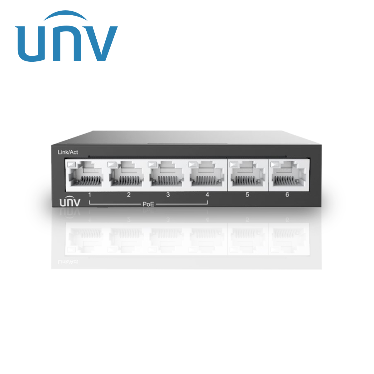 SWITCH POE 6FAST/6POE UNIVIEW NSW2020-6T-POE-IN Especificaciones: 6 puertos 10/100 Mbps (4 puerto PoE) PoE IEEE 802.3 af/at. Múltiples modos de trabajo para satisfacer las necesidades de su negocio: normal, seguro y vigilancia. Hasta 250 m de distancia de transmisión en modo vigilancia. (Solo para cámaras UNV). Carcasa totalmente metálica, segura y fiable. Capacidad máxima: 60 W. Capacidad máxima por puerto: 30 W. Modo de trabajo: Predeterminado (modo normal): todos los puertos pueden comunicarse entre sí. Extend (modo de vigilancia): distancia de transmisión de hasta 250 metros. Los puertos de enlace descendente pueden comunicarse solo con puertos de enlace ascendente.