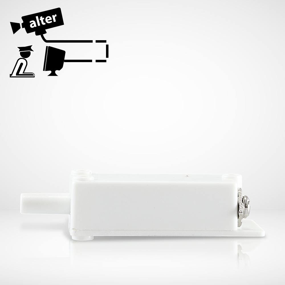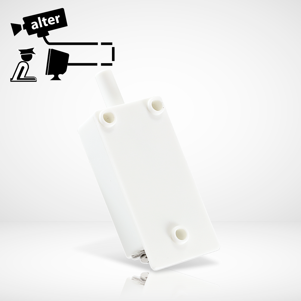 Tamper para gabinete TMP01 normalmente cerrado (NC) color blanco Tamper anti sabotaje para gabinetes cerrados, al abrir la puerta del gabinete el tamper se libera y se activa para conectar a un panel de alarma de forma cableada. También se puede conectar a cualquier tipo de entrada de alarma cableada.
