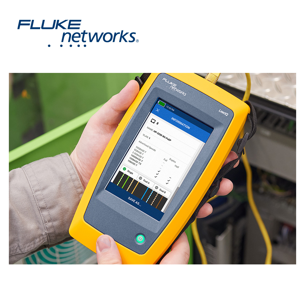 LIQ-100 FLUKE NETWORKS Comprobador de cables y de red LinkIQ La comprobación de cables en la que confía con las comprobaciones de red que necesita. El LinkIQ le permite: Encontrar la velocidad máxima de cableado (hasta 10 Gb/s) Instalar y resolver problemas en dispositivos PoE mediante la negociación con switches y la comprobación de carga PoE Identificar la información del switch conectado (nombre del switch, número de puerto y VLAN) Documentar su trabajo a través de LinkWare PC Es la solución de comprobación para verificar el rendimiento del cableado hasta 10 Gb/s y resolver problemas deconectividad de red. El LinkIQ valida el rendimiento del cable mediante mediciones basadas en la frecuencia y proporciona información de distancia al fallo junto con un mapa de cableado del cable que se está comprobando Es capaz de medir longitudes de hasta 1000 pies (305 metros) y proporciona distancia a fallos como pares abiertos, cortocircuitos y cables sin terminar. Negocia con el switch para identificar la velocidad de los datos anunciada (hasta 10GBASE-T), la identificación de dúplex medio/dúplex lleno, el nombre del switch, el número de puerto y la información de la VLAN. Para simplificar la instalación y resolución de problemas de PoE, el LinkIQ muestra los pares por los que se suministra la alimentación, incluyendo los distintos pares y niveles de potencia para implementaciones de doble firma. Además, el LinkIQ incluso aplica una carga sobre la conexión para garantizar que el switch realmente suministra la alimentación anunciada en toda la infraestructura de cableado. El LinkIQ permite documentar completamente las comprobaciones que realiza. Se pueden almacenar y recuperar hasta 1.000 resultados en el comprobador con nombres descriptivos Genera tonos analógicos o digitales compatibles con la sonda IntelliTone o Pro3000 para ayudar a localizar cables en una pared o en una sala de telecomunicaciones Funciones adicionales Luz de puerto intermitente en el switch para ayudar a identificar el puerto del switch conectado Compatible con los identificadores remotos del MicroScanner PoE para la identificación de conectores Ethernet Pantalla táctil basada en gestos Pila de Li-Ion recargable Actualizaciones sencillas de las funciones y comprobaciones de red a través de USB-C con LinkWare PC Carga a través del puerto USB-C estándar