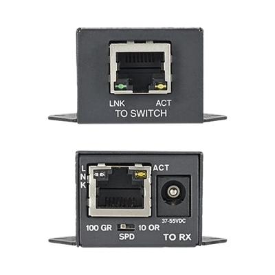 - Fuente de alimentación opcional (No incluida): los extensores PoE aceptan una fuente de alimentación con una salida de 55 Vcc/2Amp (se requieren 37 a 56 Vcc, se recomiendan 48 a 55 Vcc)