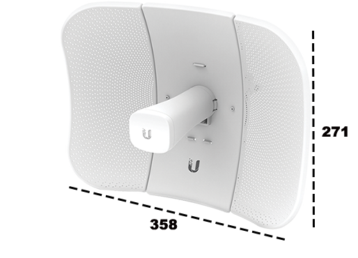 - El LiteBeam AC montado en el exterior con el reflector instalado proporciona cobertura exterior direccional (la ganancia depende del reflector)