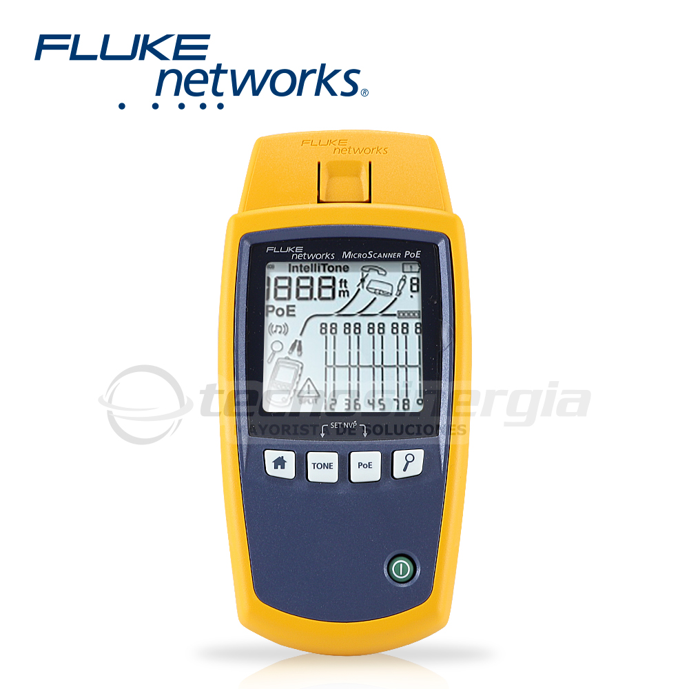 MS-POE FLUKE NETWORKSLa nueva generación de MicroScanner verifica cableado y servicios de voz/datos/vídeo con una interfaz de usuario revolucionaria. Elimina la confusión de su instalación de Poe al proporcionar una verificación de Poe rápida y simple. El probador muestra la clase de Poe disponible (1 8) de 802. 3at,. 3af También se proporcionan servicios disponibles (hasta 10G) Muestra longitud de cable Muestra mapa de cables ID de cable Tonificación de Intellitone y distancia a la falla. Verificador MicroScanner PoE con adaptador para mapas de cableado MS-POE Guía de introducción en varios idiomas Pilas y bolsa de transporte de Fluke Networks Determina con rapidez si un problema está provocado por un cable defectuoso o no conectado, porque no hay suficiente potencia o por el dispositivo alimentado (PD). Información para que el ingeniero de red investigue potenciales fallos en el funcionamiento o la configuración del switch. Detección de switch activo: Determina si un cable está conectado al puerto de un switch y la velocidad del puerto hasta 10 Gbps Comprobación del cable: Identifica cortocircuitos y pares abiertos o cruzados en ambos extremos, muestra la longitud de cada par, y envía tonos para encontrar los cables.