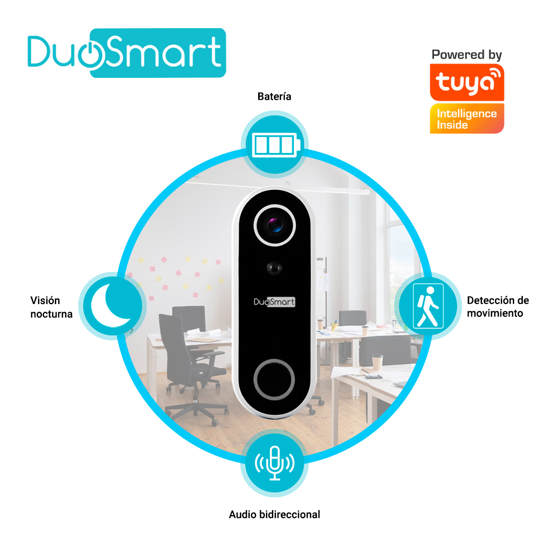 VIDEOPORTERO WIFI DUOSMART E55 2MP NOTIFICACIONES PUSH COMPATIBLE CON APP DUOSMART Y SOPORTE DE TARJETA DE MEMORIA MICROSD DE HASTA 128 GB (NO INCLUIDA)